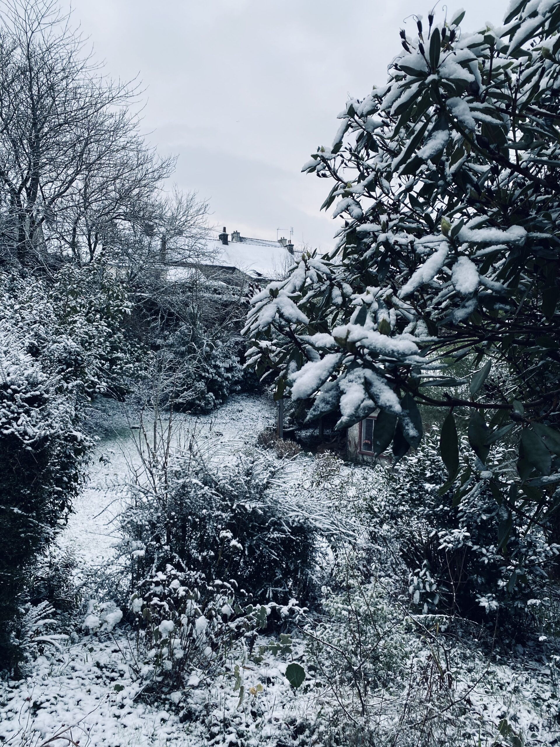 J’ai déposé hier Présages de la neige, le premier volume de Sur champ de sable, à la Maison de la Presse de Rostrenen, et tout le monde a été surpris car, de fait, on annonçait de la neige pour Noël. Étrange au réveil de voir sous la neige l’endroit qu’évoque le livre… comme si le rêve qu’il évoque se réalisait juste le temps d’un temps hors du temps.